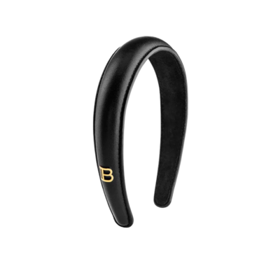 Balmain Puffed Leather Headband Чорний обруч шкіряний з логотипом “B”, 1 шт.