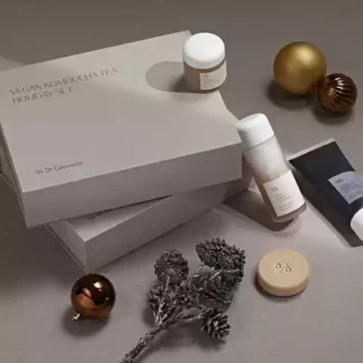 У лімітованний набір «Vegan Kombucha Holiday Set» входить: Веганська багатофункціональна кремова есенція з екстрактом комбучі і чорного чаю Dr. Ceuracle