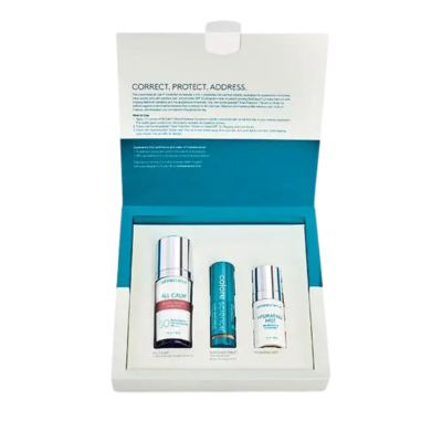 Набір для усунення почервонінь, до якого входять продукти, створені з використанням запатентованої технології 3-в-1 (Корекція + Захист + Лікування). Забезпечує