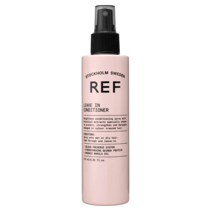 REF LEAVE IN CONDITIONER – це легкий кондиціонер-спрей, що містить спеціально підібрані рослинні екстракти для захисту, зміцнення, глибокого зволоження та легкого розчісування пошкодженого або фарбованого волосся.