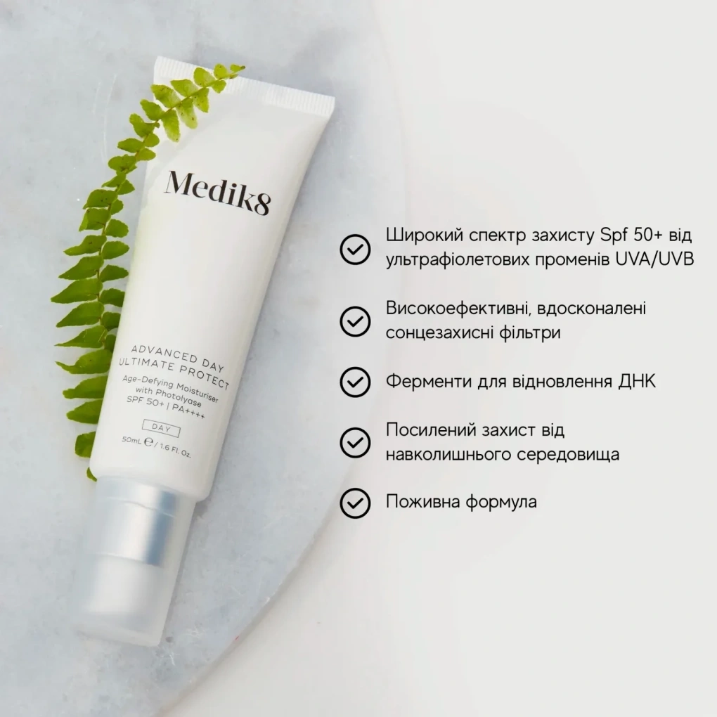 Medik8 ADVANCED DAY ULTIMATE PROTECT™ Антивіковий зволожувальний сонцезахисний крем із фотоліазою, SPF 50+ і PA++++, 50 мл