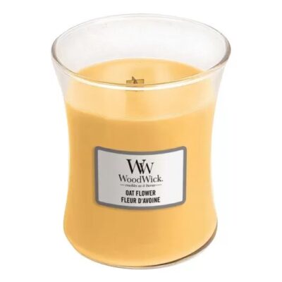 Ароматична свічка у склянці WoodWick Oat Flower випромінює заспокійливий аромат, який допомагає відволіктися від щоденних турбот. Пахощі, зіткані з акордів